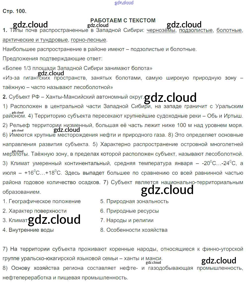 Ответ на задание стр.100 Тетрадь-тренажер География за 9 (девятый) класс Ходова, Ольховая Сферы 2016