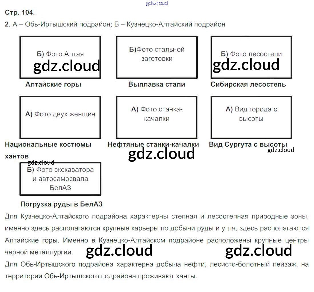 Ответ на задание стр.104 Тетрадь-тренажер География за 9 (девятый) класс Ходова, Ольховая Сферы 2016