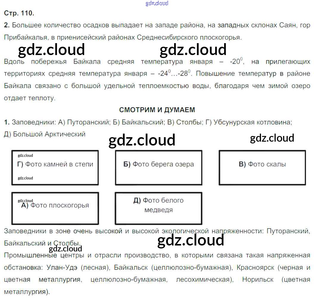 Ответ на задание стр.110 Тетрадь-тренажер География за 9 (девятый) класс Ходова, Ольховая Сферы 2016