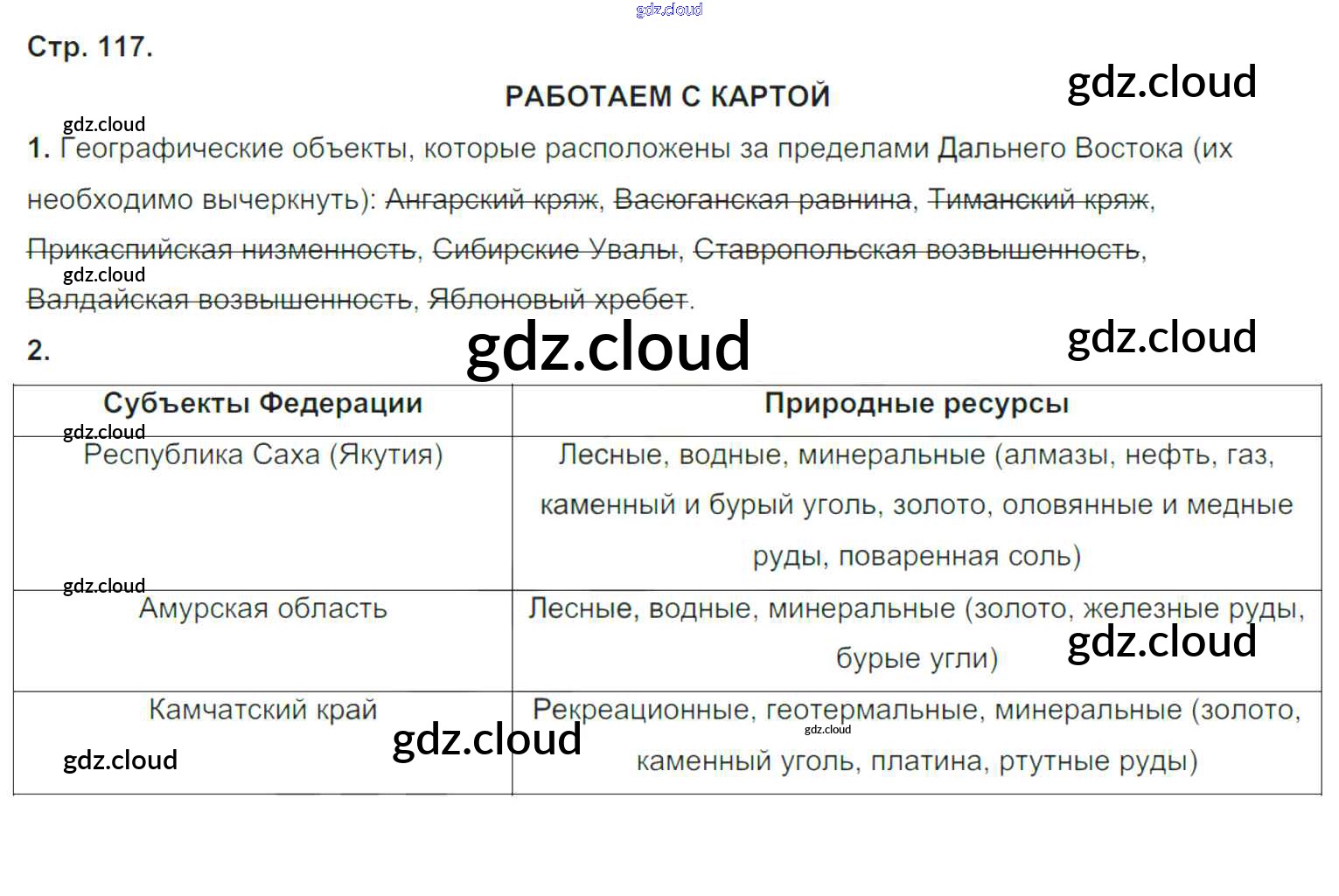 Ответ на задание стр.117 Тетрадь-тренажер География за 9 (девятый) класс Ходова, Ольховая Сферы 2016