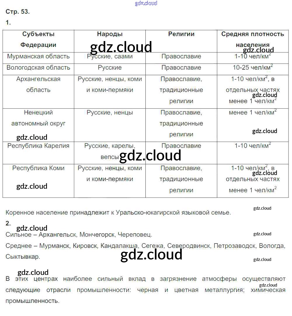 Ответ на задание стр.53 Тетрадь-тренажер География за 9 (девятый) класс Ходова, Ольховая Сферы 2016