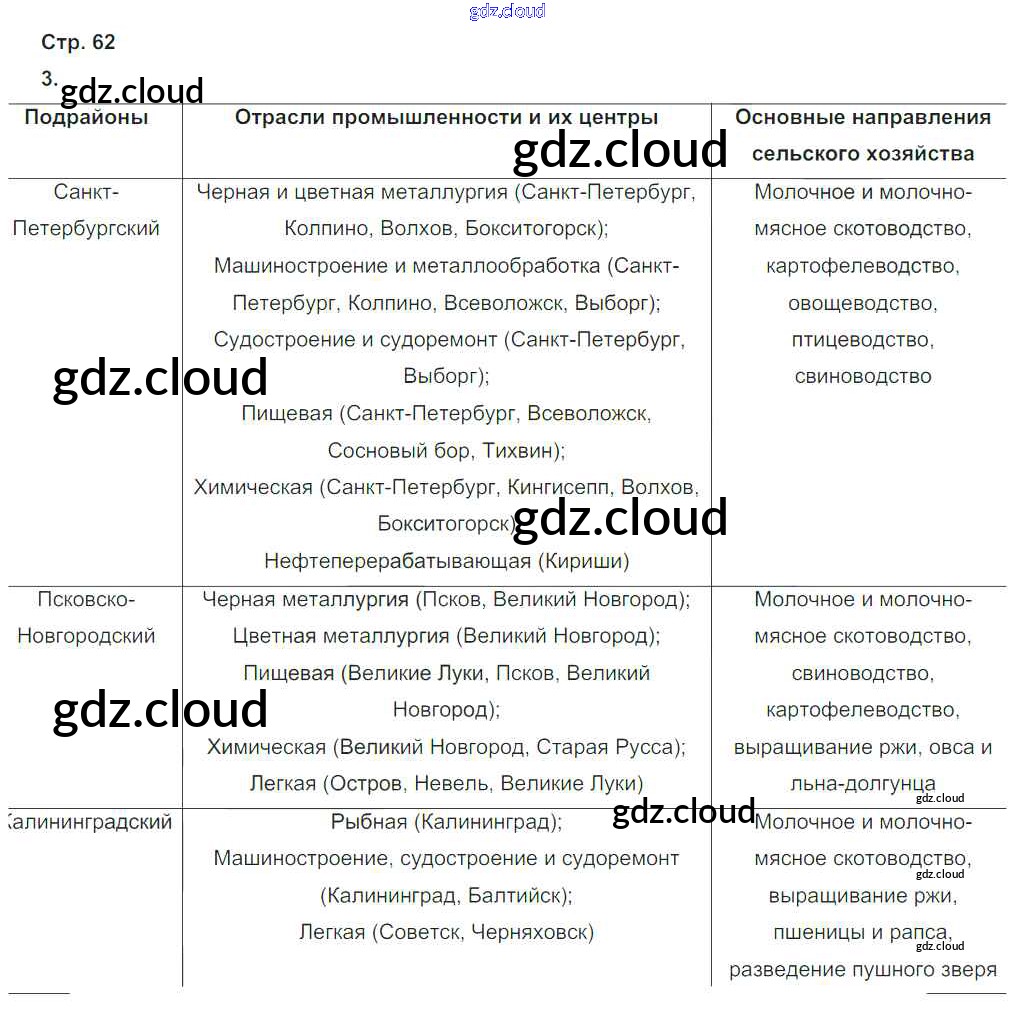 Ответ на задание стр.62 Тетрадь-тренажер География за 9 (девятый) класс Ходова, Ольховая Сферы 2016