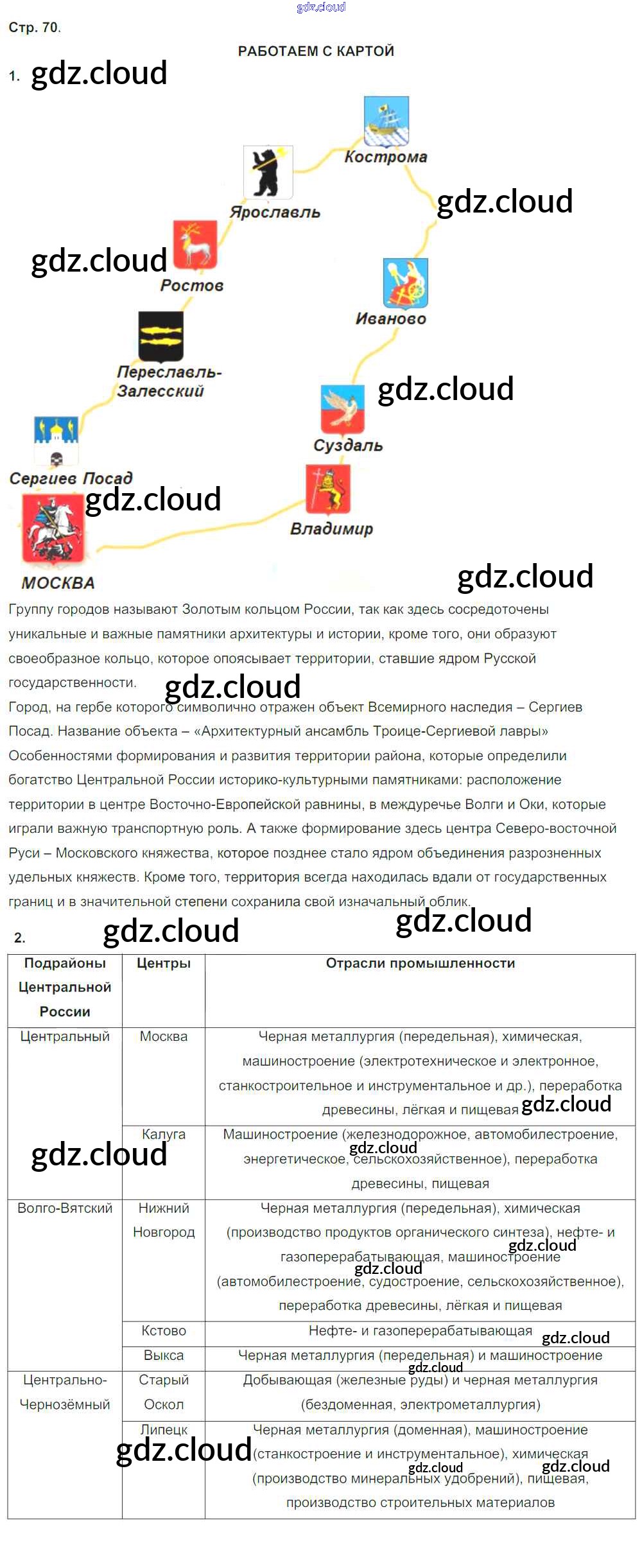 Ответ на задание стр.70 Тетрадь-тренажер География за 9 (девятый) класс Ходова, Ольховая Сферы 2016