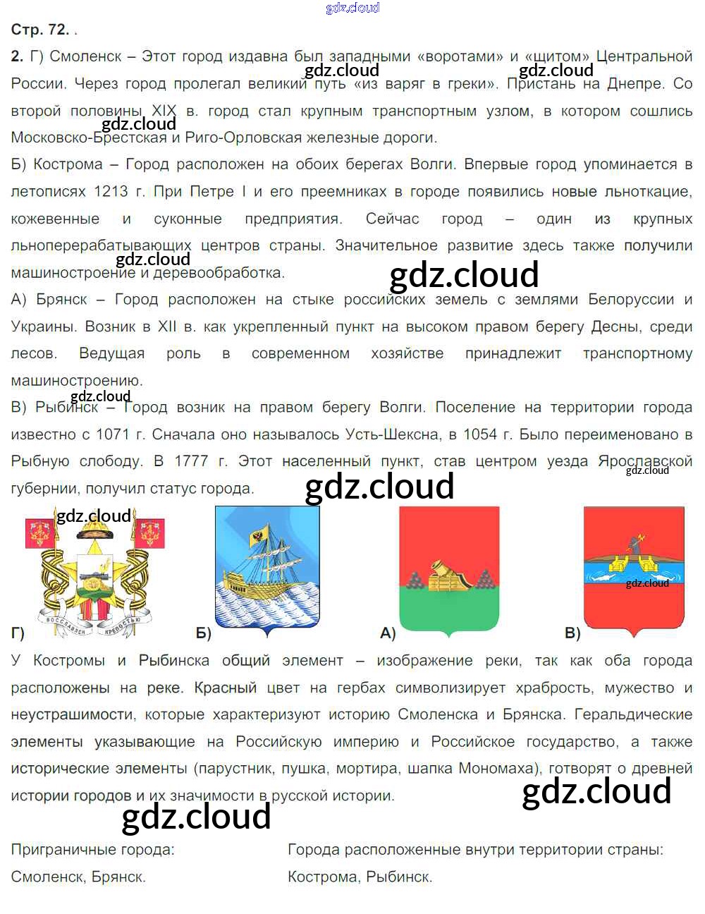 Ответ на задание стр.72 Тетрадь-тренажер География за 9 (девятый) класс Ходова, Ольховая Сферы 2016