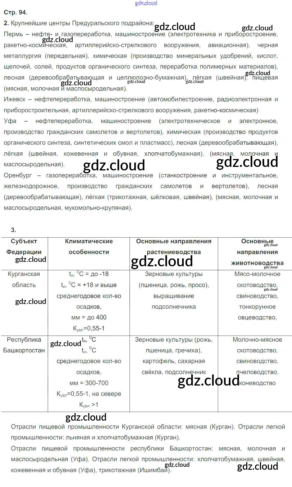 Ответ на задание стр.94 Тетрадь-тренажер География за 9 (девятый) класс Ходова, Ольховая Сферы 2016