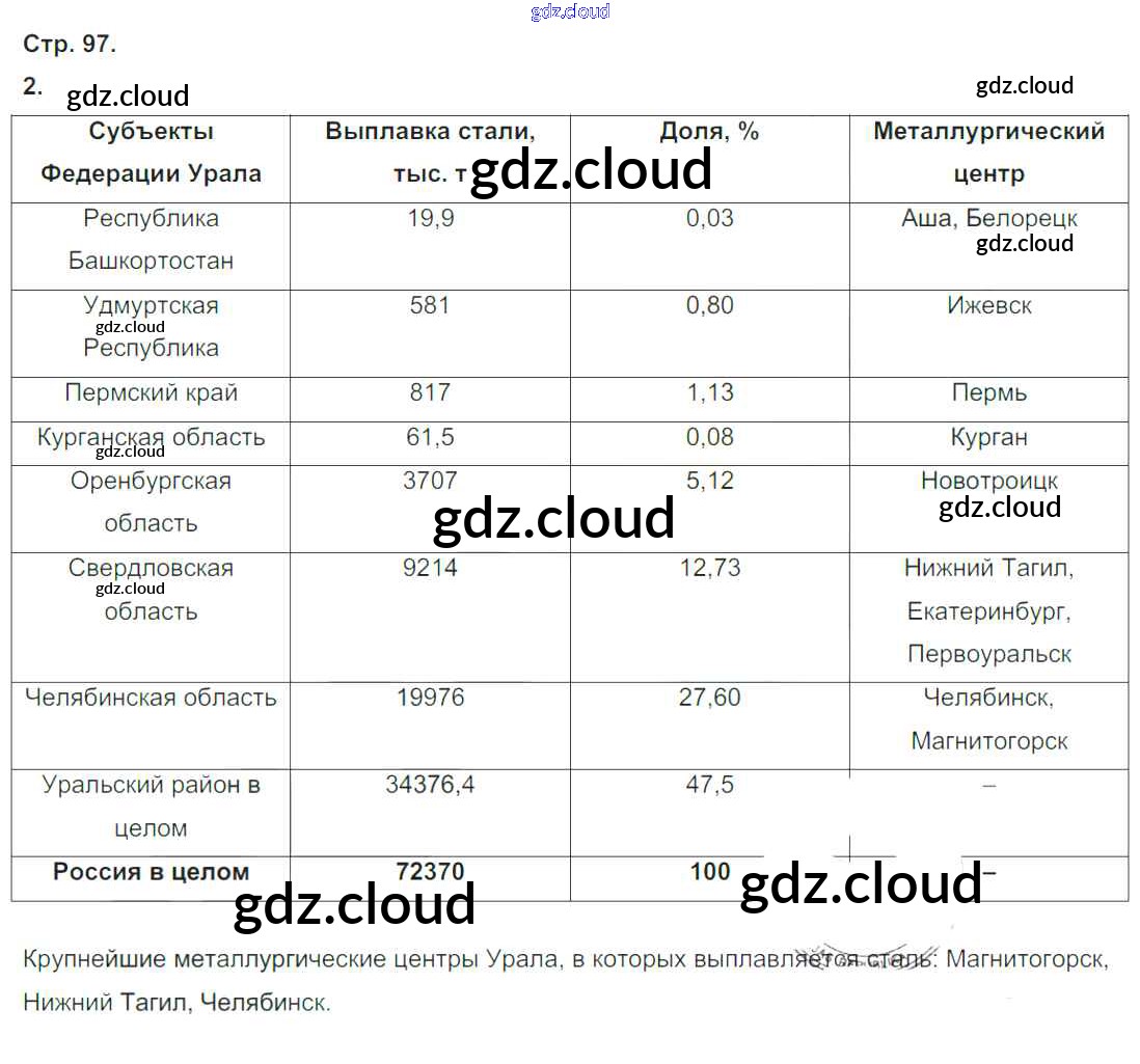 Ответ на задание стр.97 Тетрадь-тренажер География за 9 (девятый) класс Ходова, Ольховая Сферы 2016