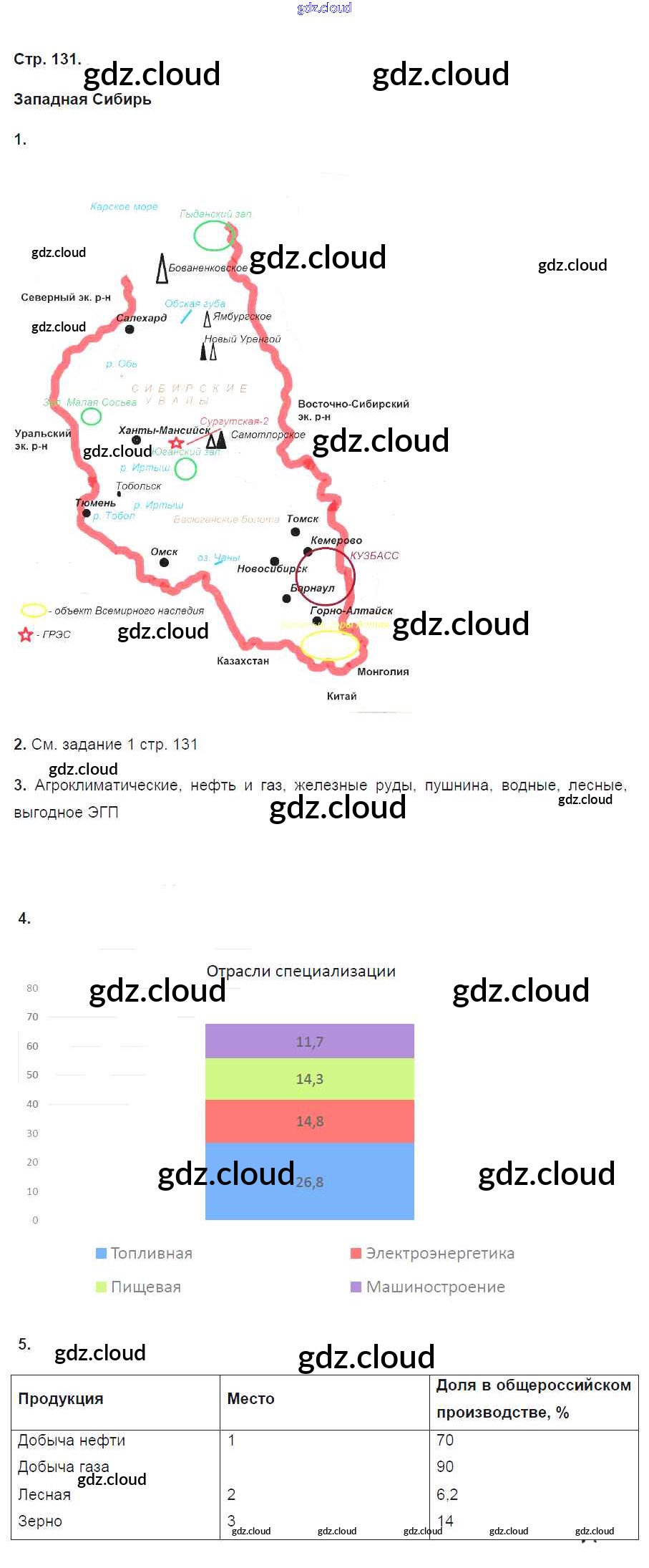 Ответ на задание стр.131 Рабочая тетрадь География за 9 (девятый) класс Ким, Марченко, Низовцев Вертикаль 2017 ФГОС онлайн и без номера телефона.