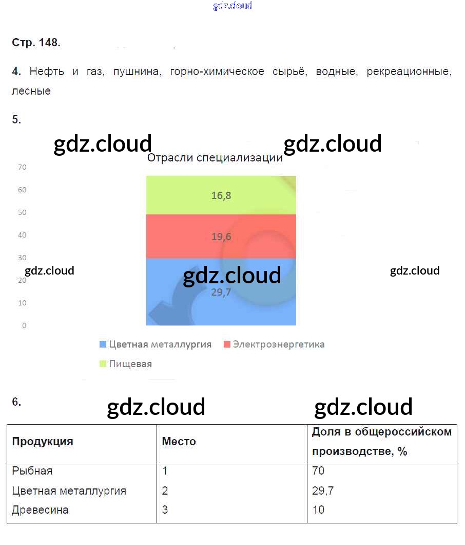 Ответ на задание стр.148 Рабочая тетрадь География за 9 (девятый) класс Ким, Марченко, Низовцев Вертикаль 2017 ФГОС онлайн и без номера телефона.