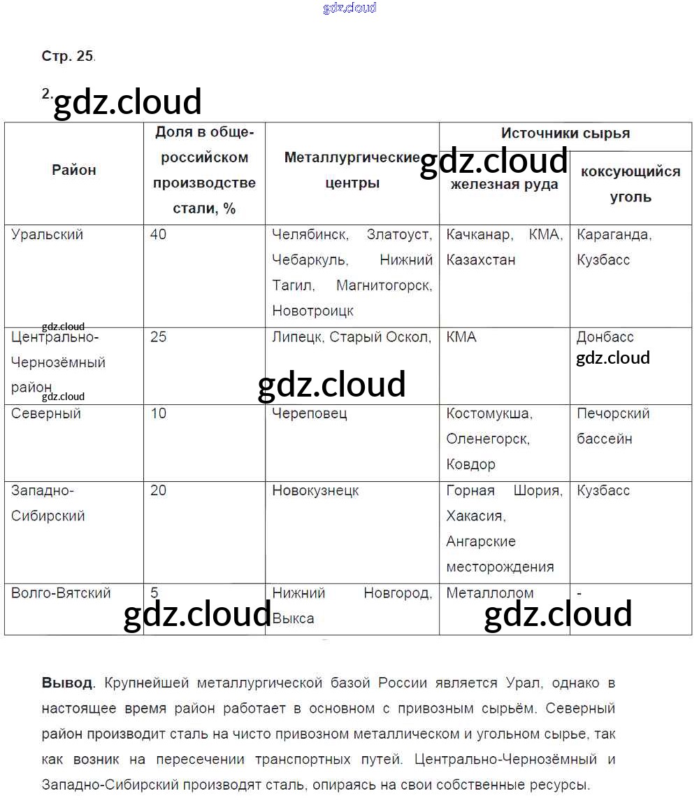 Ответ на задание стр.25 Рабочая тетрадь География за 9 (девятый) класс Ким, Марченко, Низовцев Вертикаль 2017 ФГОС онлайн и без номера телефона.