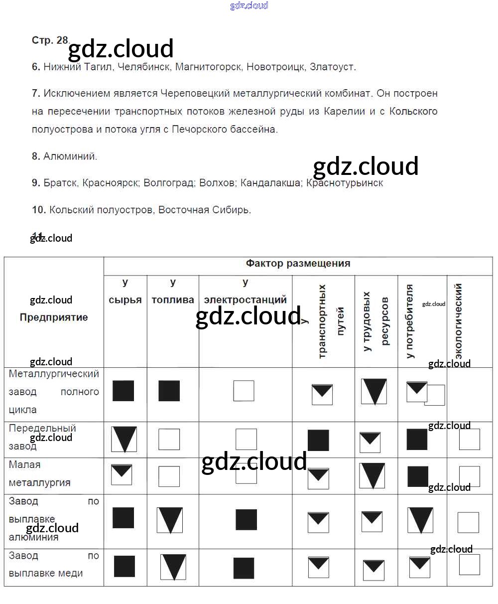Ответ на задание стр.28 Рабочая тетрадь География за 9 (девятый) класс Ким, Марченко, Низовцев Вертикаль 2017 ФГОС онлайн и без номера телефона.