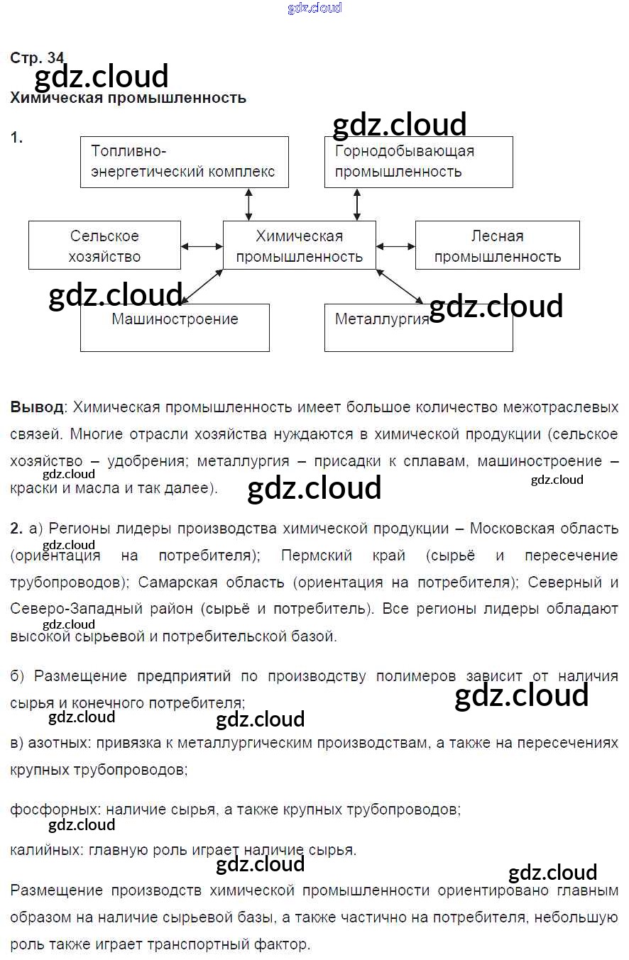 Ответ на задание стр.34 Рабочая тетрадь География за 9 (девятый) класс Ким, Марченко, Низовцев Вертикаль 2017 ФГОС онлайн и без номера телефона.