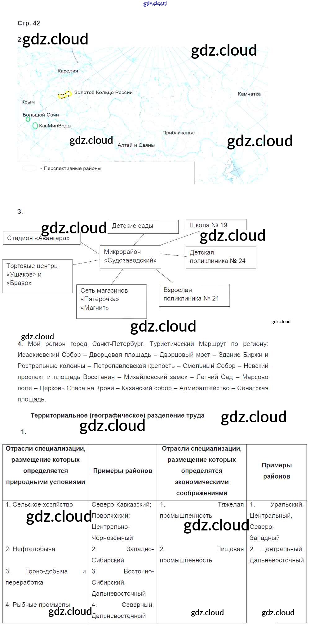 Ответ на задание стр.42 Рабочая тетрадь География за 9 (девятый) класс Ким, Марченко, Низовцев Вертикаль 2017 ФГОС онлайн и без номера телефона.