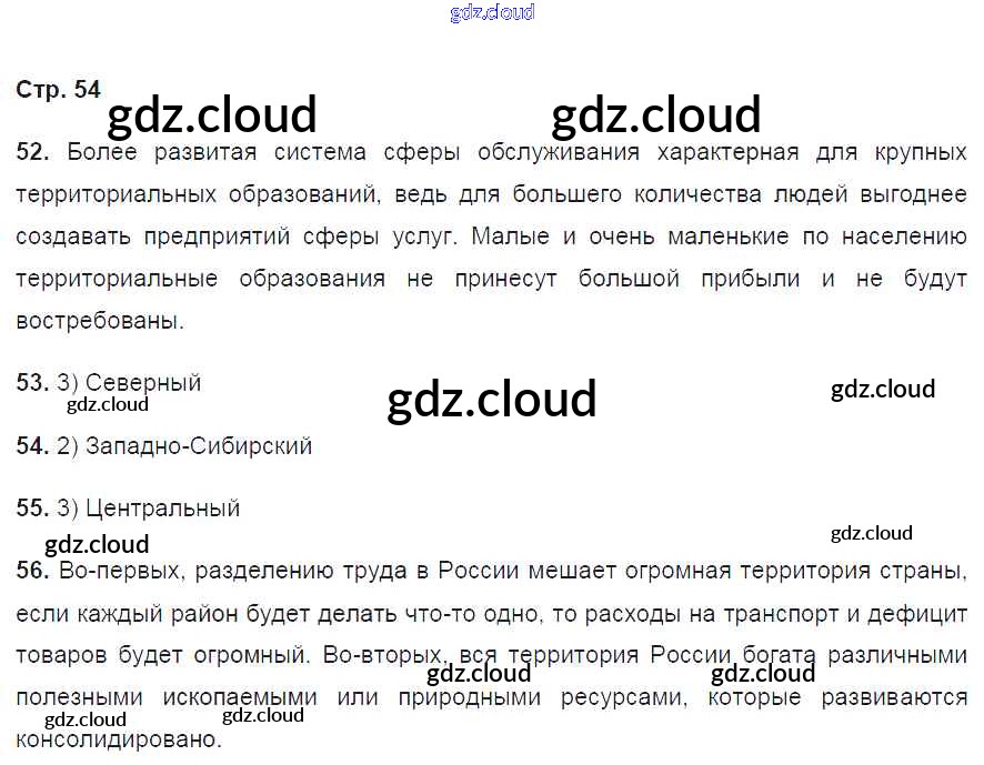 Ответ на задание стр.54 Рабочая тетрадь География за 9 (девятый) класс Ким, Марченко, Низовцев Вертикаль 2017 ФГОС онлайн и без номера телефона.