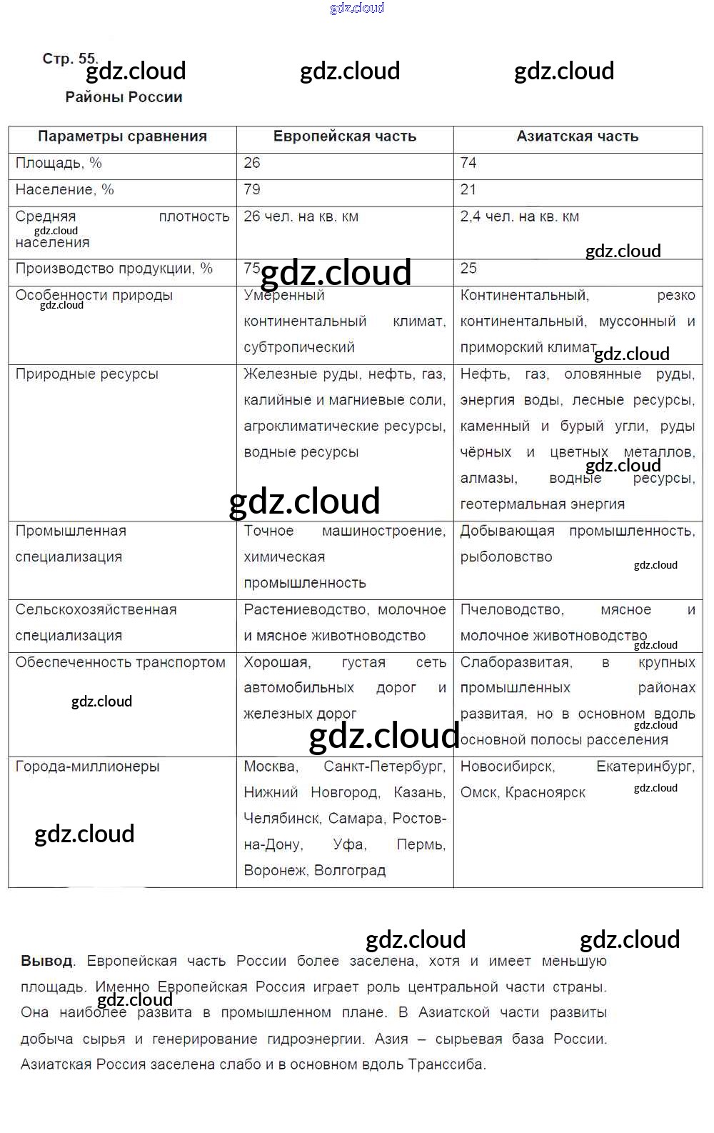 Ответ на задание стр.55 Рабочая тетрадь География за 9 (девятый) класс Ким, Марченко, Низовцев Вертикаль 2017 ФГОС онлайн и без номера телефона.