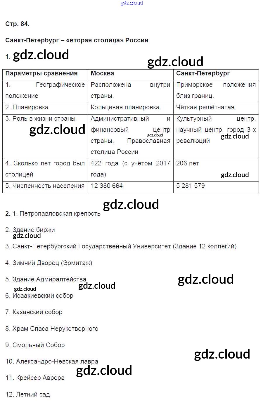 Ответ на задание стр.84 Рабочая тетрадь География за 9 (девятый) класс Ким, Марченко, Низовцев Вертикаль 2017 ФГОС онлайн и без номера телефона.