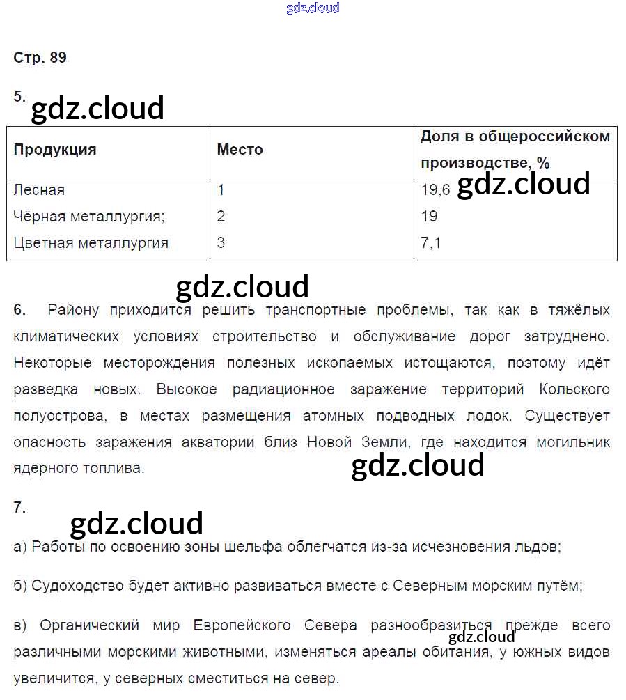 Ответ на задание стр.89 Рабочая тетрадь География за 9 (девятый) класс Ким, Марченко, Низовцев Вертикаль 2017 ФГОС онлайн и без номера телефона.