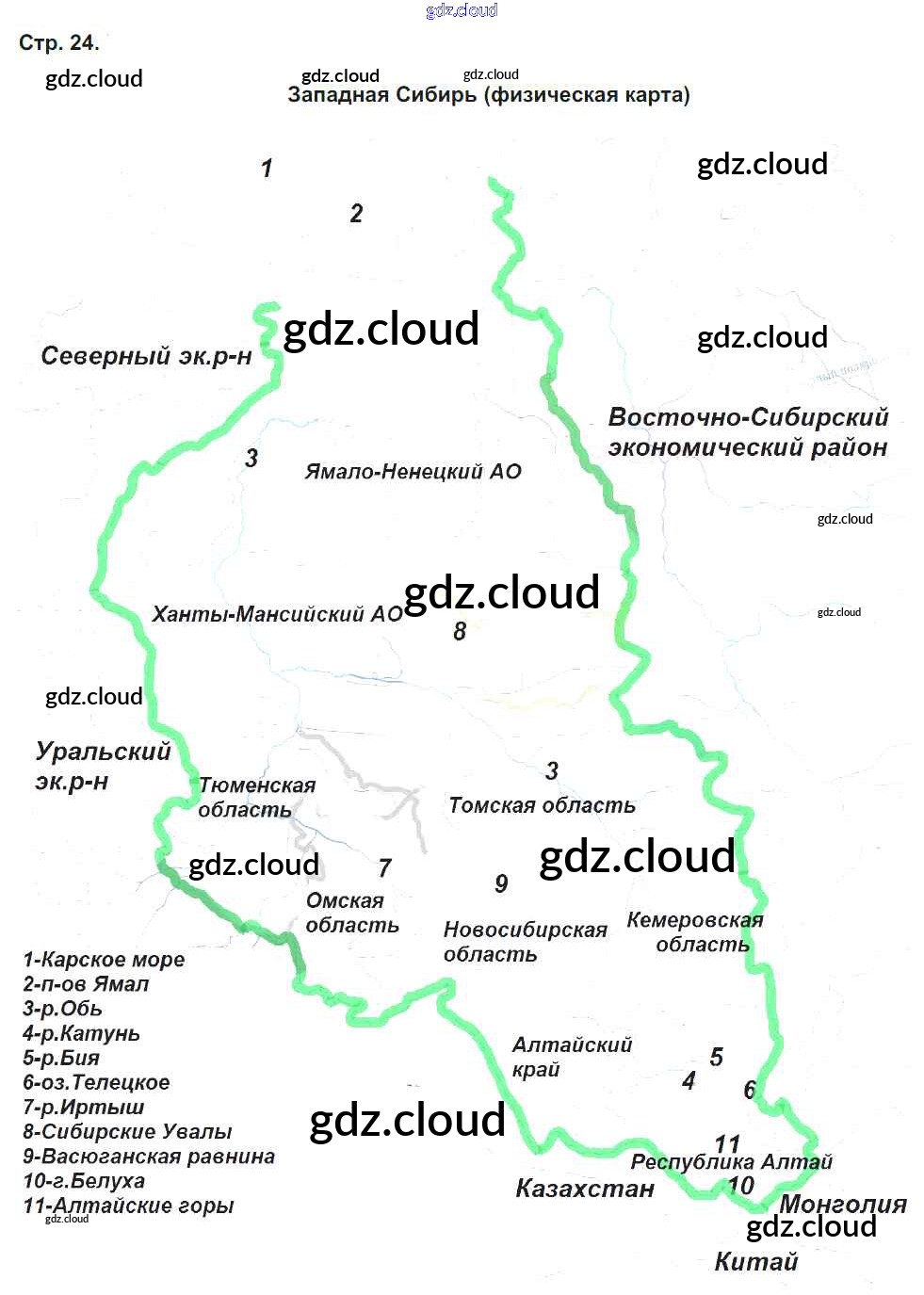 Ответ на задание 24 Контурные карты География за 9 (девятый) класс Котляр Сферы 2019 ФГОС онлайн и без номера телефона.