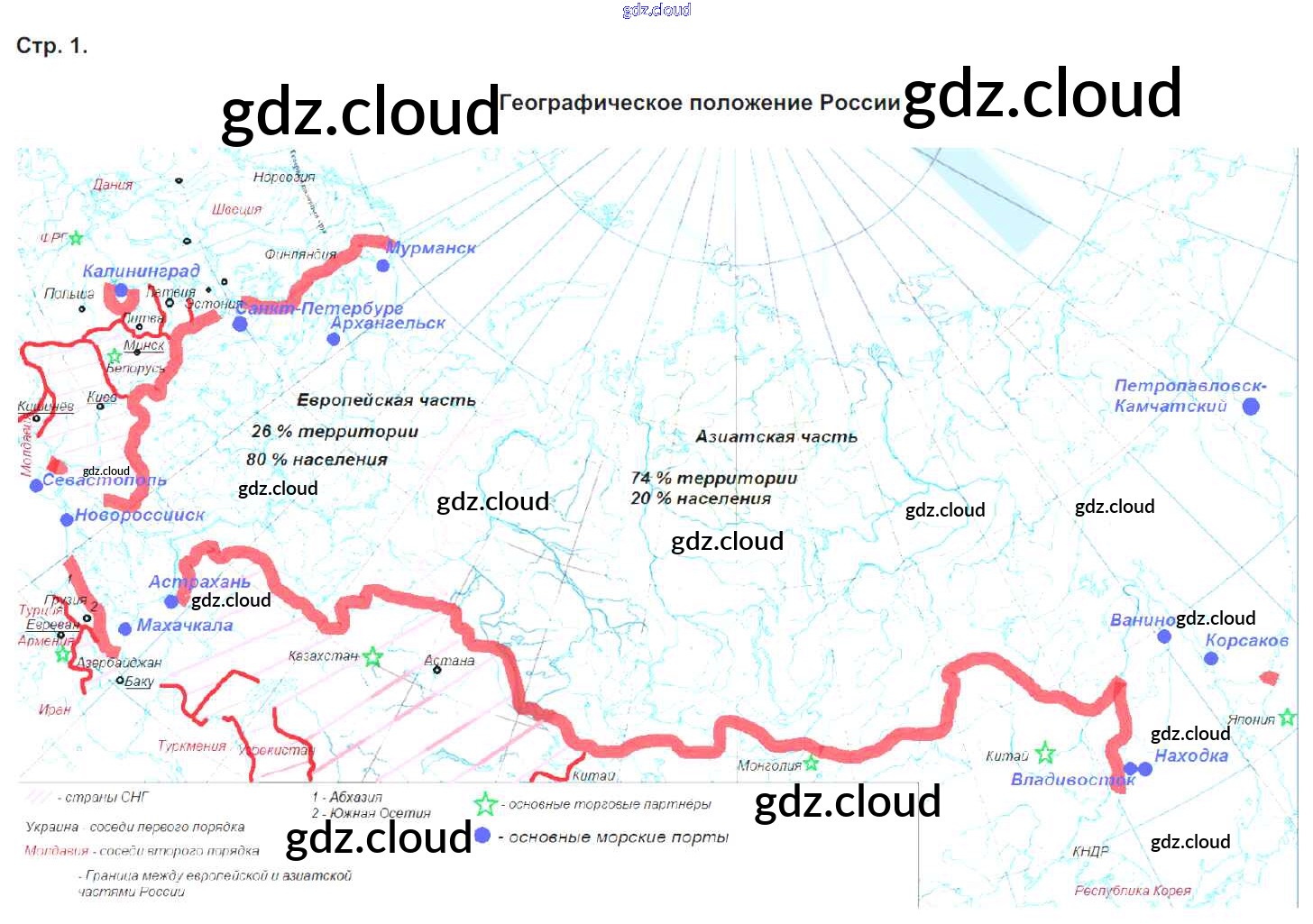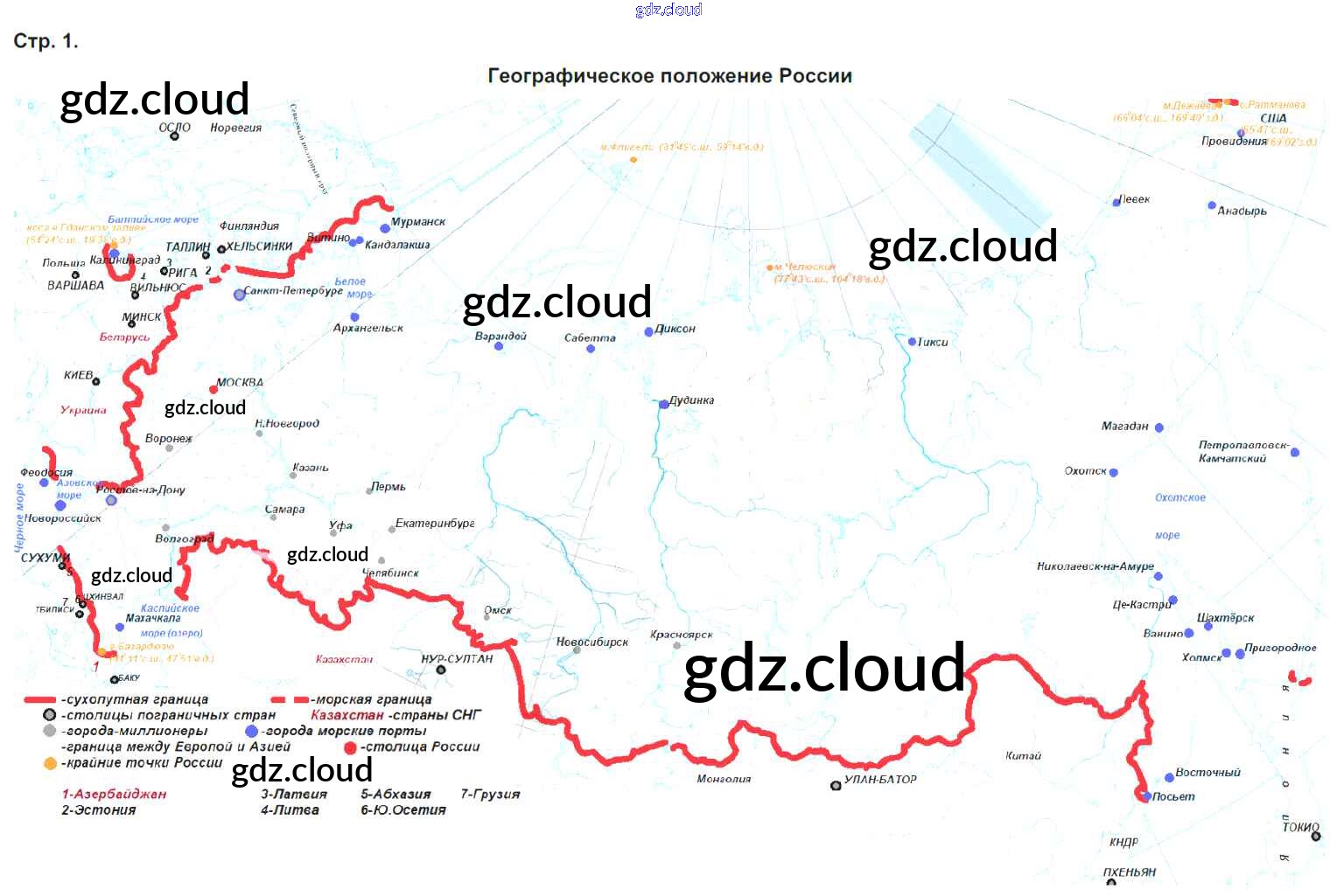 Ответ на задание стр.1. Географическое положение России Контурные карты География за 9 (девятый) класс Приваловский 2020