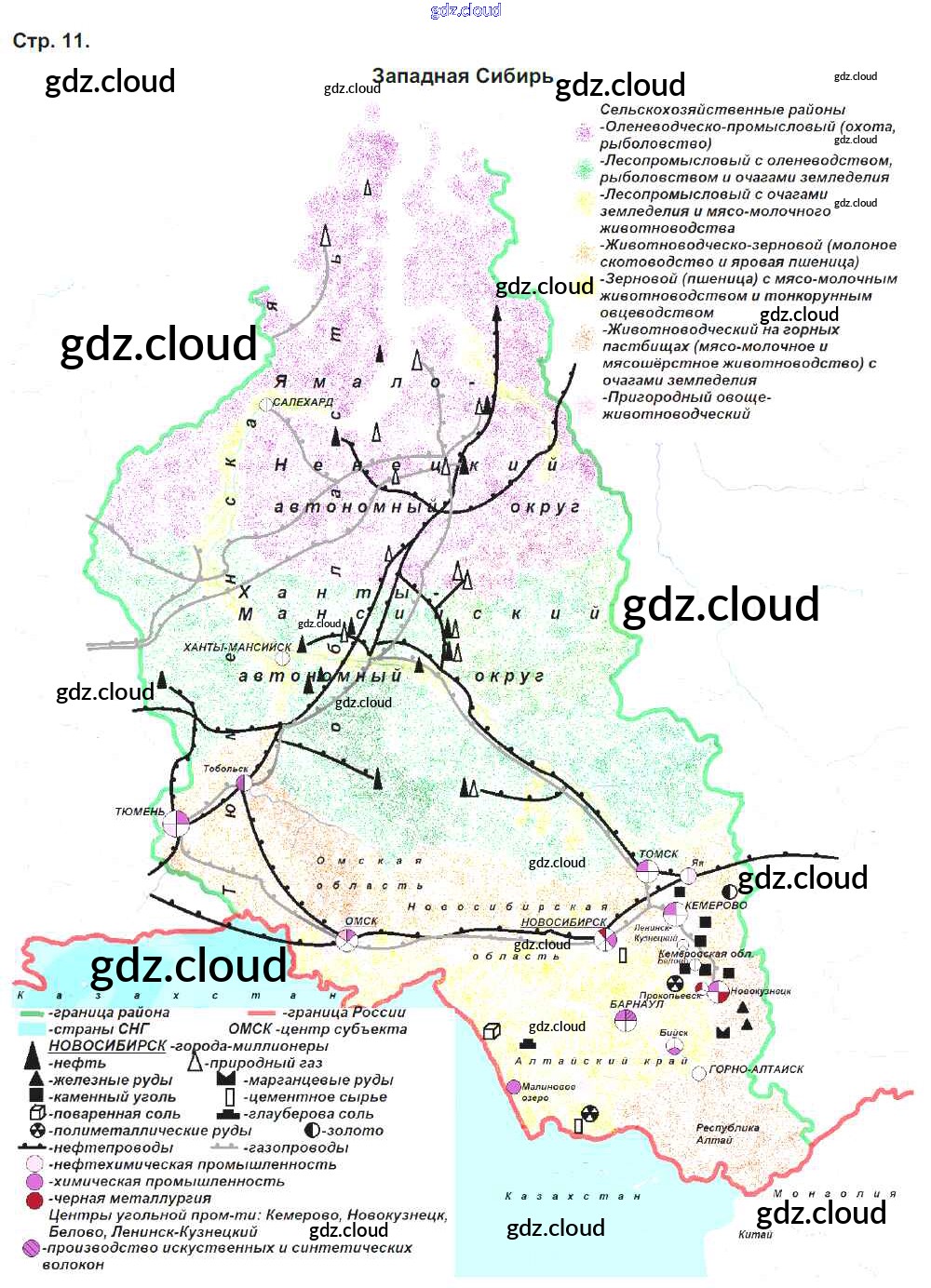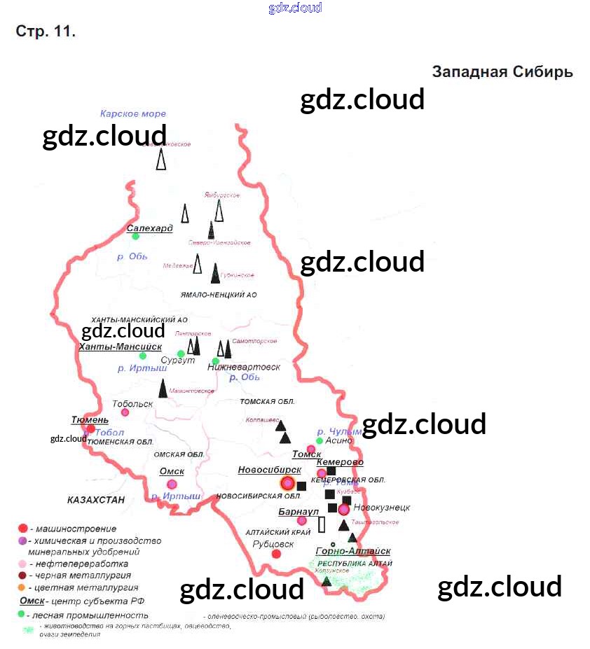 Ответ на задание стр.11. Западная Сибирь Контурные карты География за 9 (девятый) класс Приваловский 2020