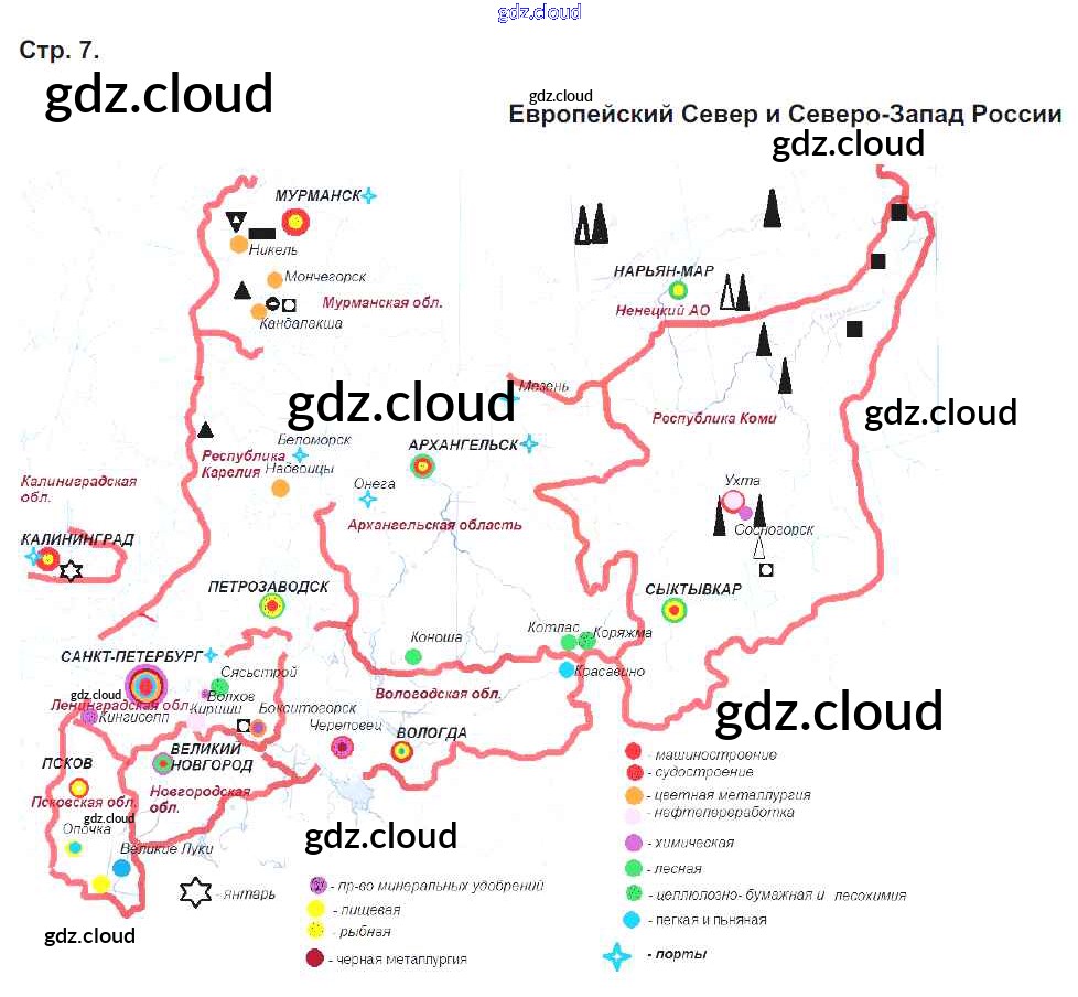 Ответ на задание стр.7. Европейский Север и Северо-Запад России Контурные карты География за 9 (девятый) класс Приваловский 2020