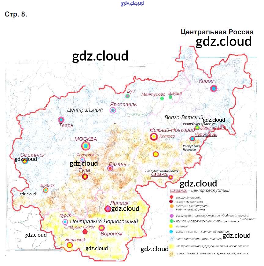 Ответ на задание стр.8. Центральная Россия Контурные карты География за 9 (девятый) класс Приваловский 2020