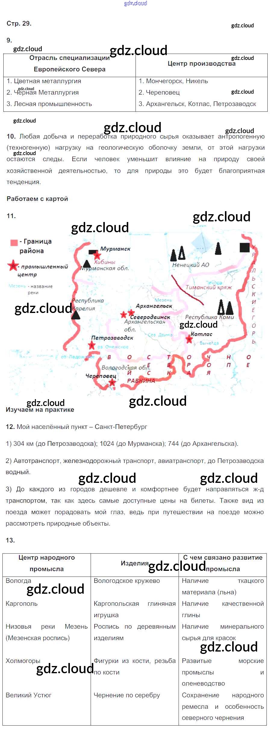 Ответ на задание стр.29 Тетрадь-тренажер География за 9 (девятый) класс Николина Полярная звезда 2016 ФГОС онлайн и без номера телефона.