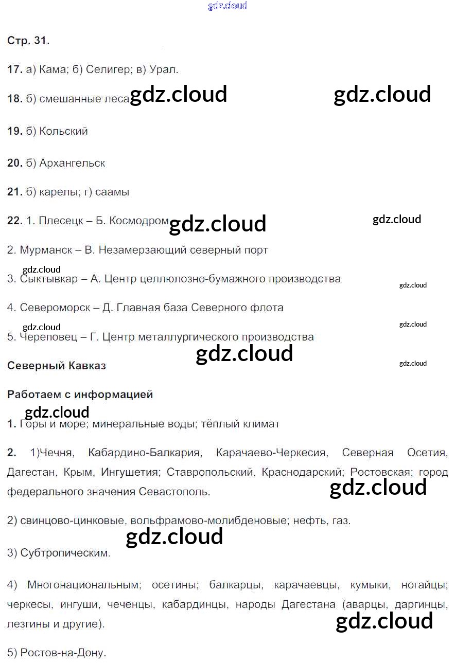 Ответ на задание стр.31 Тетрадь-тренажер География за 9 (девятый) класс Николина Полярная звезда 2016 ФГОС онлайн и без номера телефона.