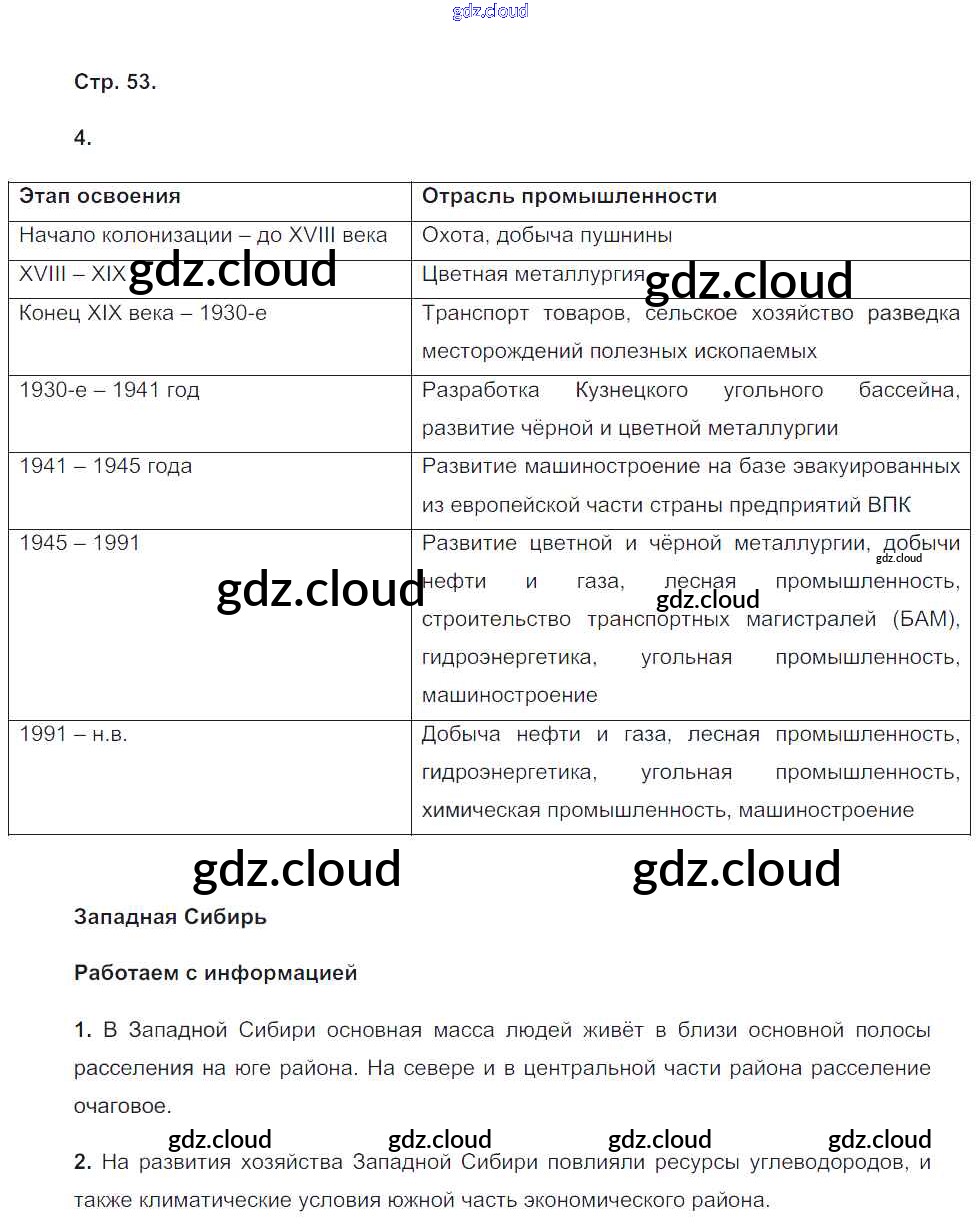 Ответ на задание стр.53 Тетрадь-тренажер География за 9 (девятый) класс Николина Полярная звезда 2016 ФГОС онлайн и без номера телефона.