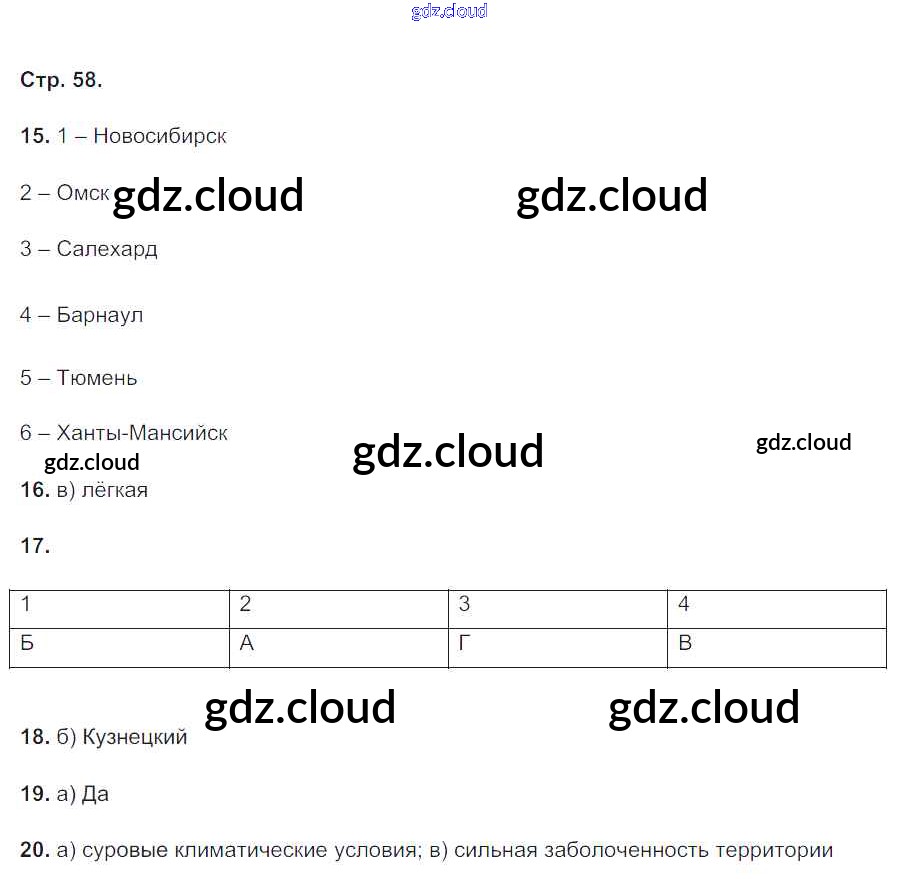 Ответ на задание стр.58 Тетрадь-тренажер География за 9 (девятый) класс Николина Полярная звезда 2016 ФГОС онлайн и без номера телефона.