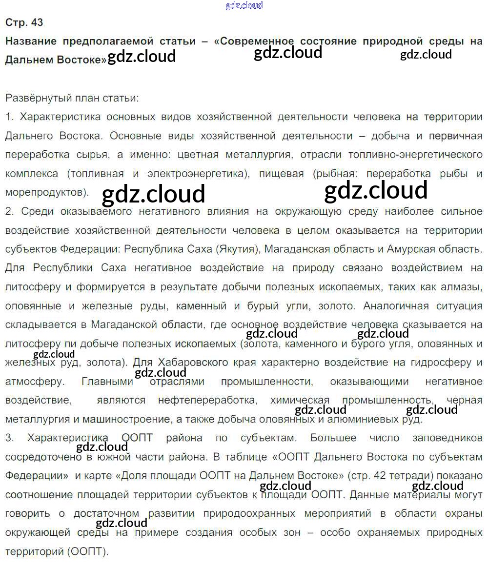 Ответ на задание 43 Тетрадь-практикум География за 9 (девятый) класс Ольховая, Протасова, Савельева Сферы 2016 ФГОС онлайн и без номера телефона.
