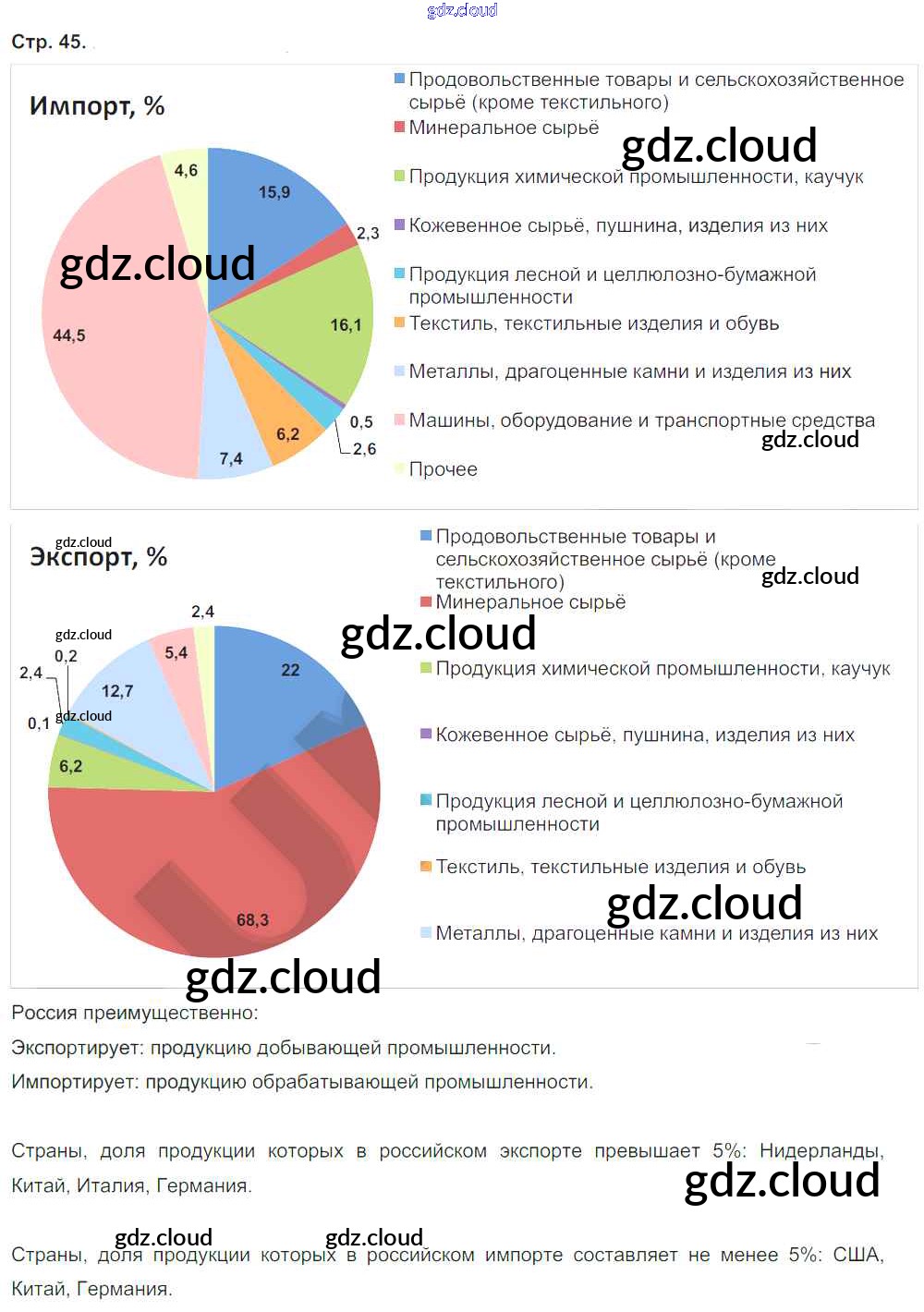 Ответ на задание 45 Тетрадь-практикум География за 9 (девятый) класс Ольховая, Протасова, Савельева Сферы 2016 ФГОС онлайн и без номера телефона.