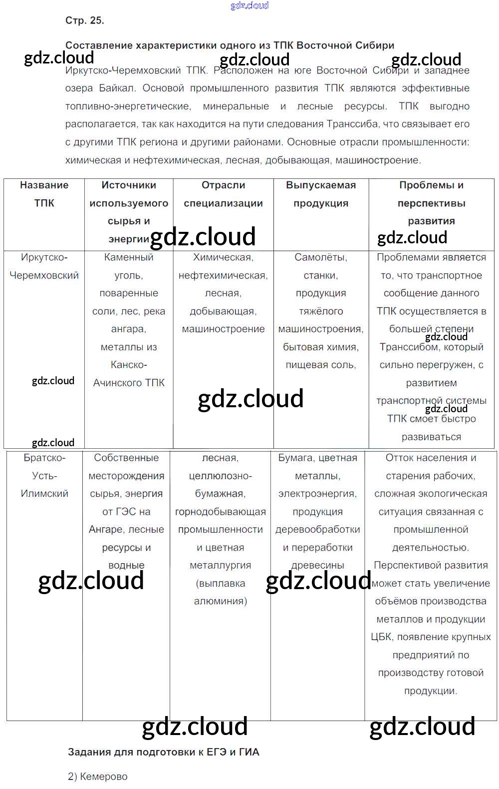 Ответ на задание 25 Рабочая тетрадь с контурными картами География за 9 (девятый) класс Сиротин 2020 ФГОС онлайн и без номера телефона.