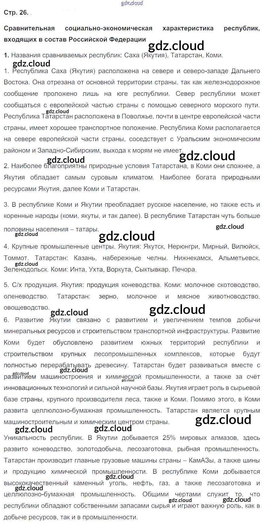 Ответ на задание 26 Рабочая тетрадь с контурными картами География за 9 (девятый) класс Сиротин 2020 ФГОС онлайн и без номера телефона.