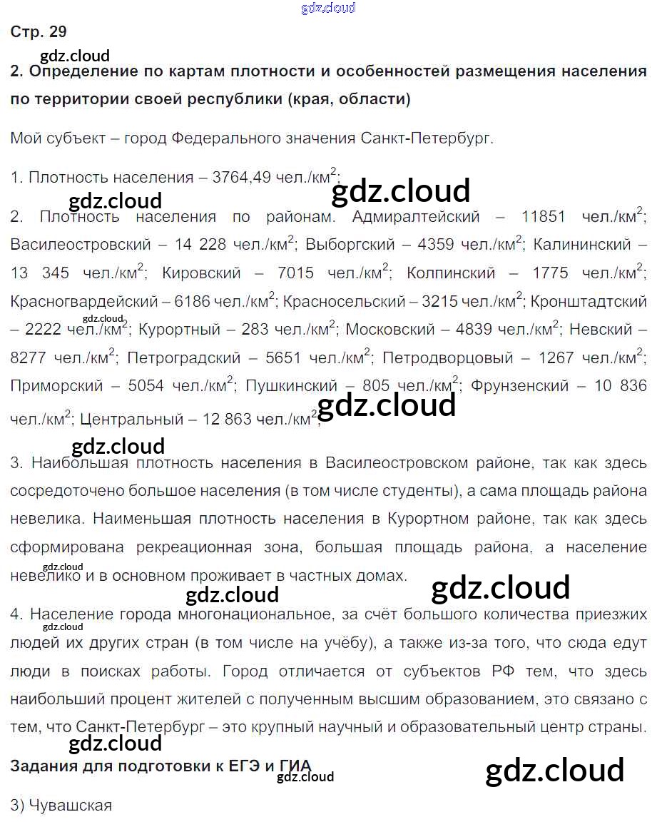 Ответ на задание 29 Рабочая тетрадь с контурными картами География за 9 (девятый) класс Сиротин 2020 ФГОС онлайн и без номера телефона.