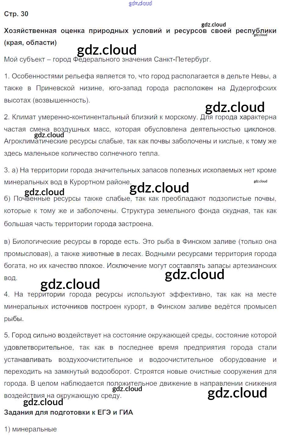 Ответ на задание 30 Рабочая тетрадь с контурными картами География за 9 (девятый) класс Сиротин 2020 ФГОС онлайн и без номера телефона.