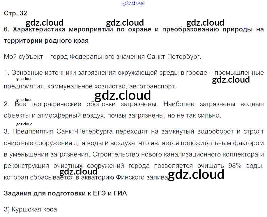 Ответ на задание 32 Рабочая тетрадь с контурными картами География за 9 (девятый) класс Сиротин 2020 ФГОС онлайн и без номера телефона.