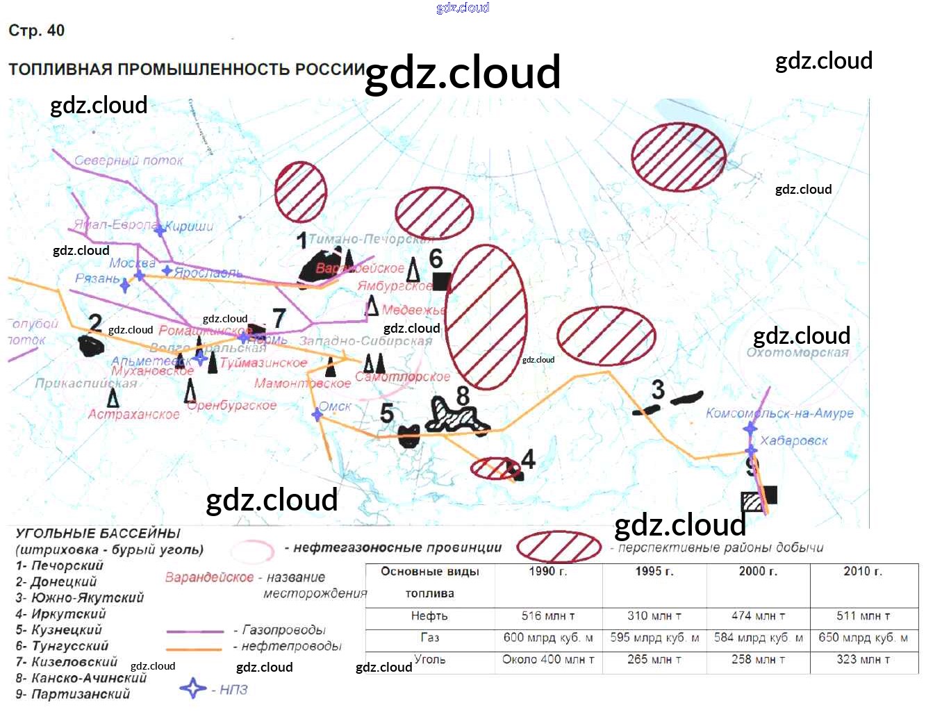 Ответ на задание 40 Рабочая тетрадь с контурными картами География за 9 (девятый) класс Сиротин 2020 ФГОС онлайн и без номера телефона.
