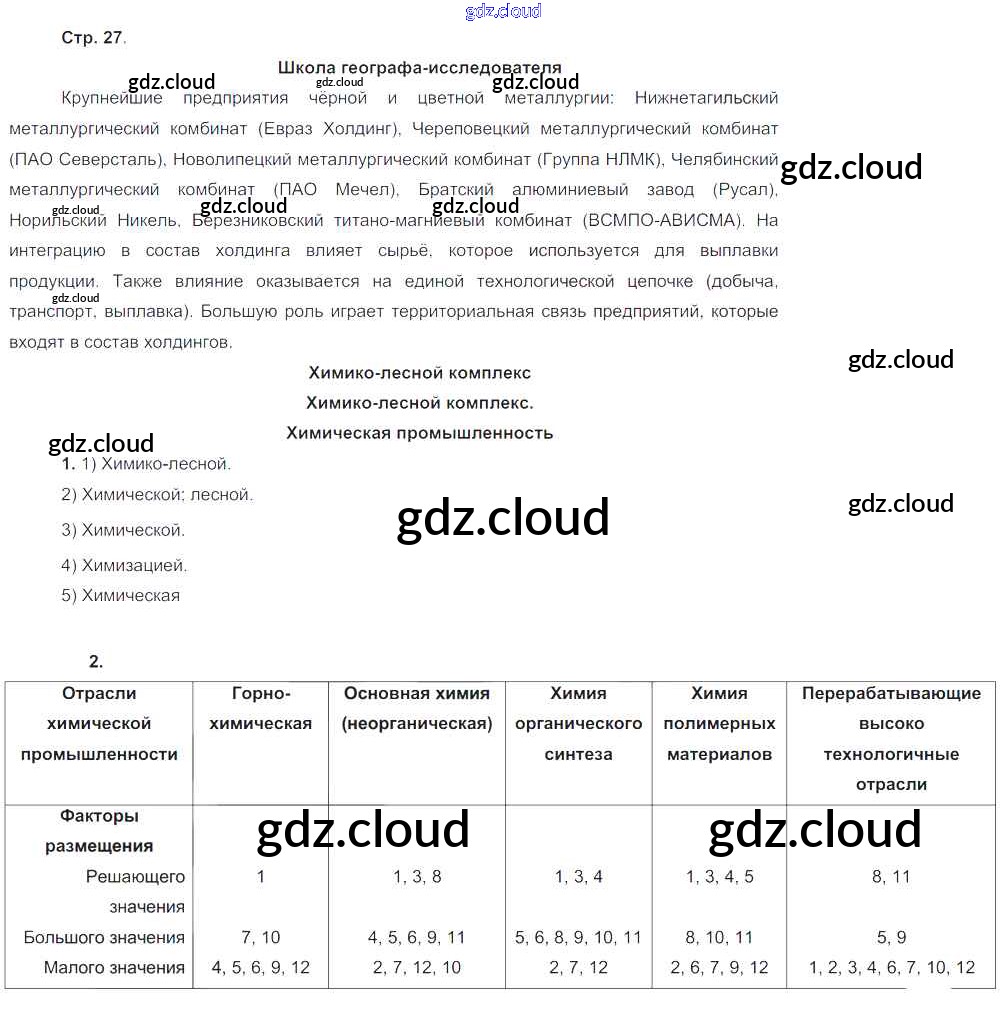 Ответ на задание стр.27 Рабочая тетрадь География за 9 (девятый) класс Таможняя, Толкунова Алгоритм успеха 2017 ФГОС онлайн и без номера телефона.