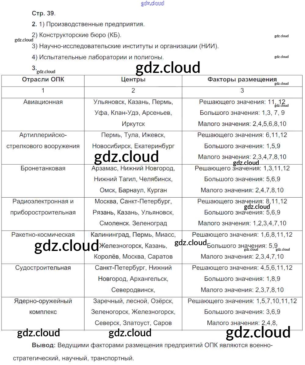Ответ на задание стр.39 Рабочая тетрадь География за 9 (девятый) класс Таможняя, Толкунова Алгоритм успеха 2017 ФГОС онлайн и без номера телефона.