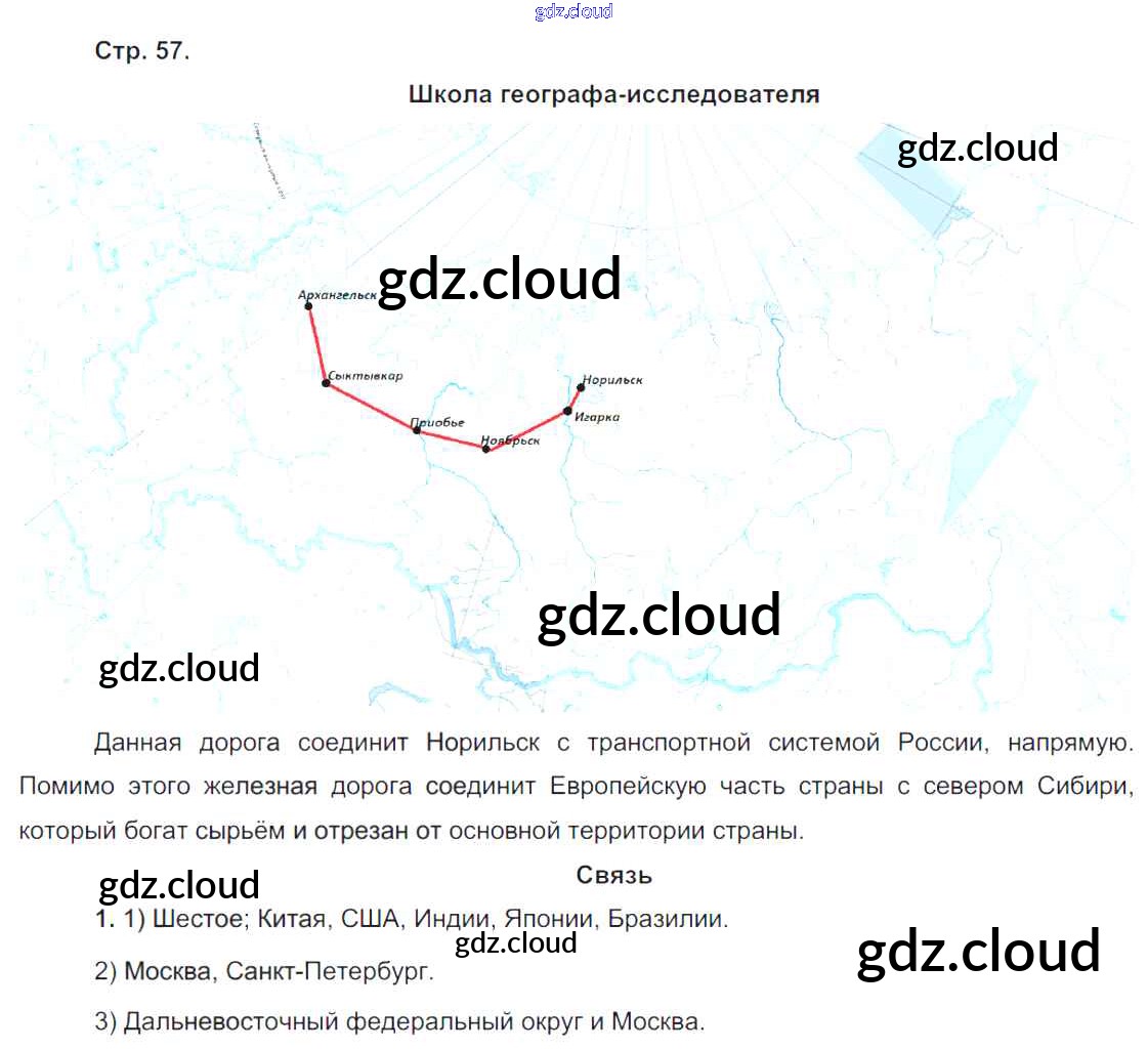 Ответ на задание стр.57 Рабочая тетрадь География за 9 (девятый) класс Таможняя, Толкунова Алгоритм успеха 2017 ФГОС онлайн и без номера телефона.