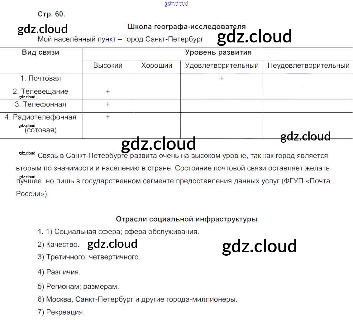 Ответ на задание стр.60 Рабочая тетрадь География за 9 (девятый) класс Таможняя, Толкунова Алгоритм успеха 2017 ФГОС онлайн и без номера телефона.
