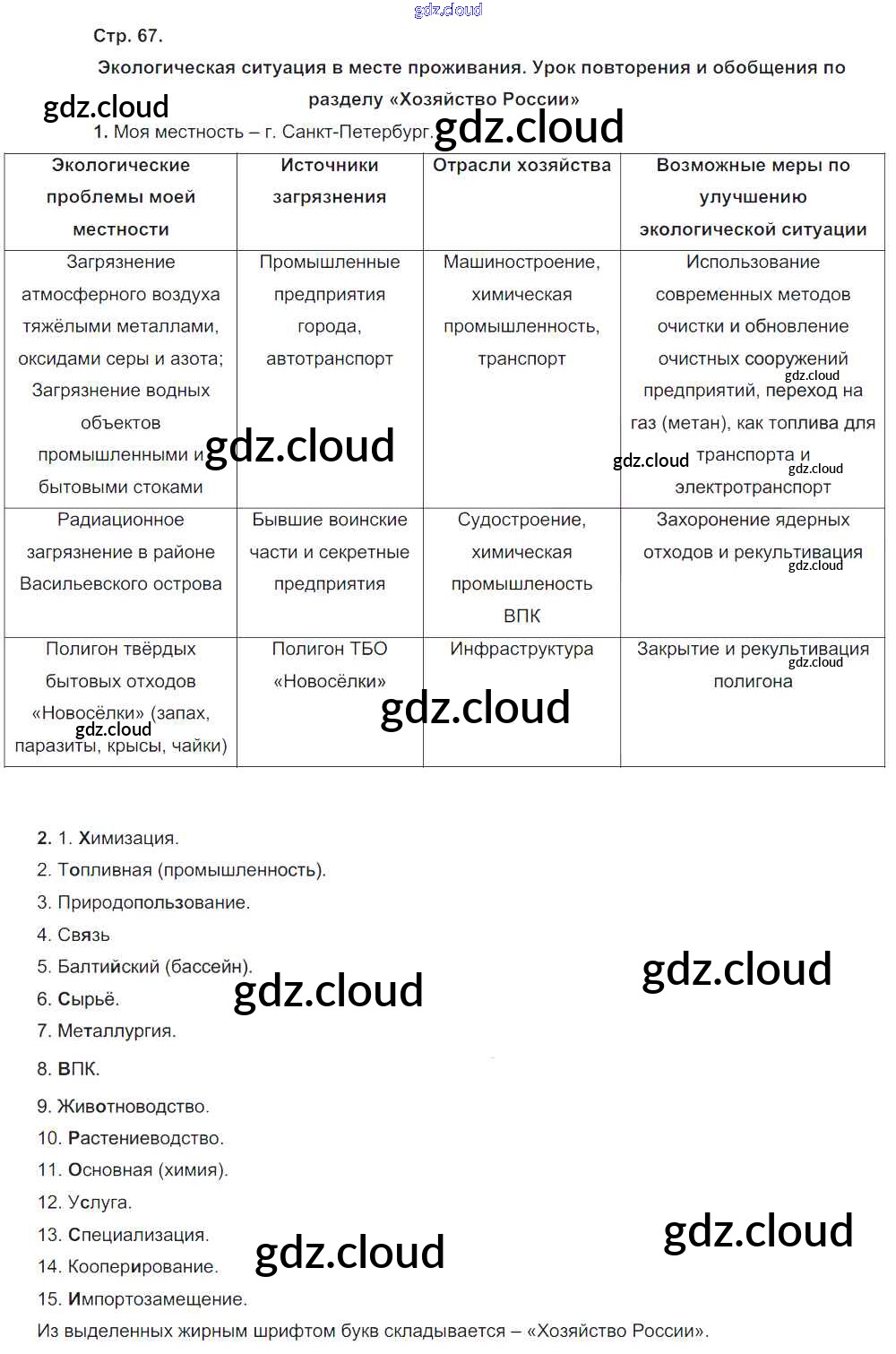 Ответ на задание стр.67 Рабочая тетрадь География за 9 (девятый) класс Таможняя, Толкунова Алгоритм успеха 2017 ФГОС онлайн и без номера телефона.