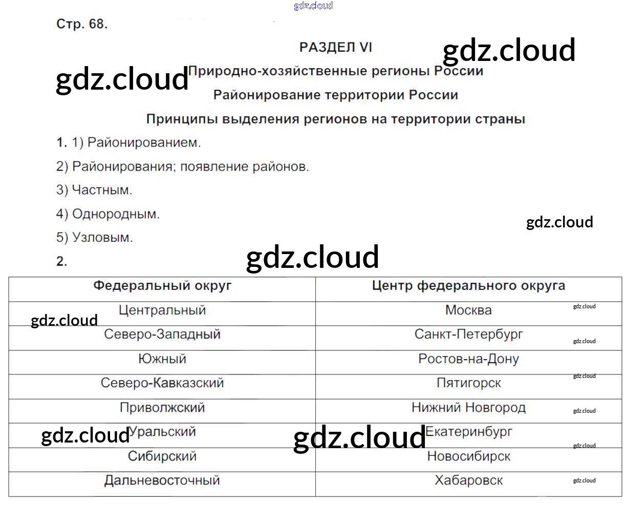 Ответ на задание стр.68 Рабочая тетрадь География за 9 (девятый) класс Таможняя, Толкунова Алгоритм успеха 2017 ФГОС онлайн и без номера телефона.