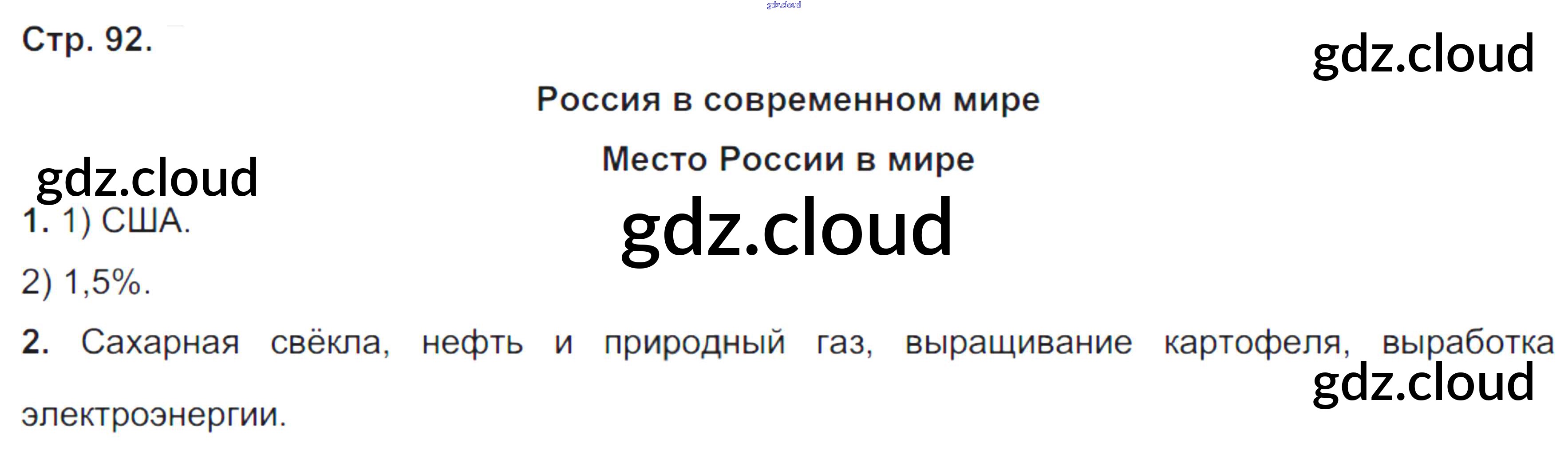 Ответ на задание стр.92 Рабочая тетрадь География за 9 (девятый) класс Таможняя, Толкунова Алгоритм успеха 2017 ФГОС онлайн и без номера телефона.