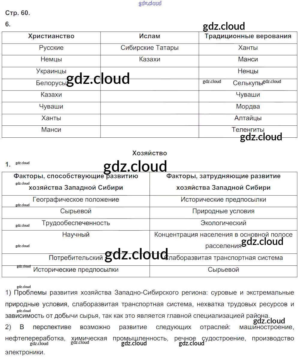Ответ на задание стр.60 Рабочая тетрадь География за 9 (девятый) класс Таможняя, Толкунова Алгоритм успеха 2017 ФГОС онлайн и без номера телефона.