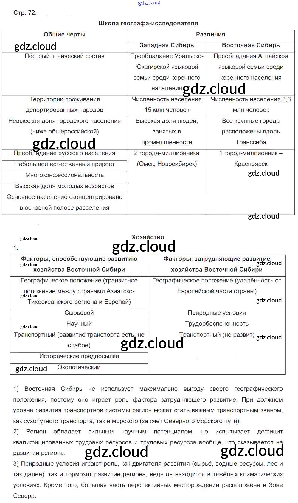 Ответ на задание стр.72 Рабочая тетрадь География за 9 (девятый) класс Таможняя, Толкунова Алгоритм успеха 2017 ФГОС онлайн и без номера телефона.