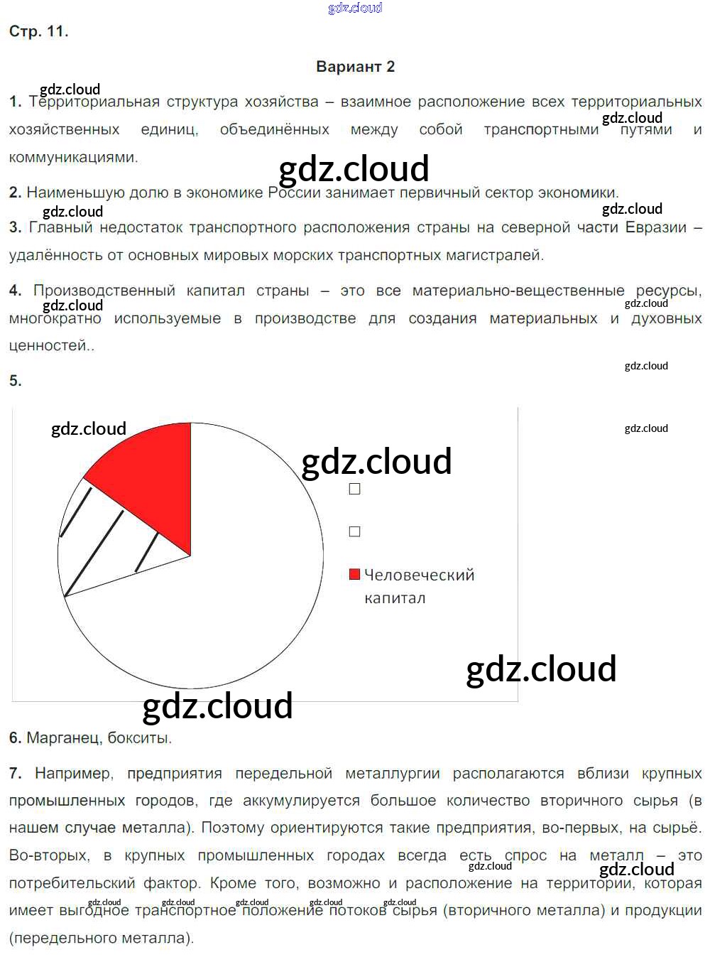 Ответ на задание вариант-2 Тетрадь-экзаменатор География за 9 (девятый) класс Барабанов Сферы 2017