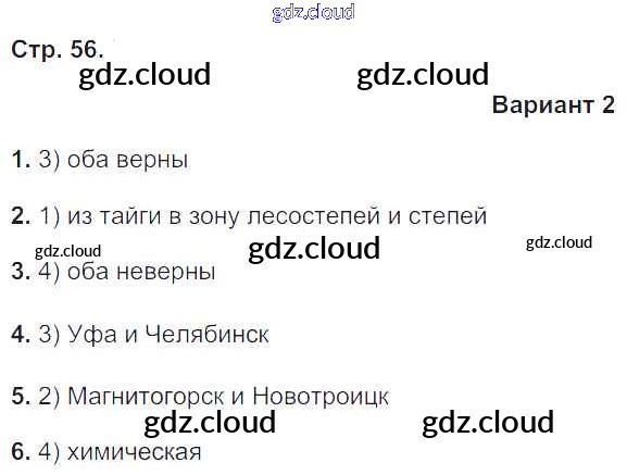 Ответ на задание вариант-2 Тетрадь-экзаменатор География за 9 (девятый) класс Барабанов Сферы 2017