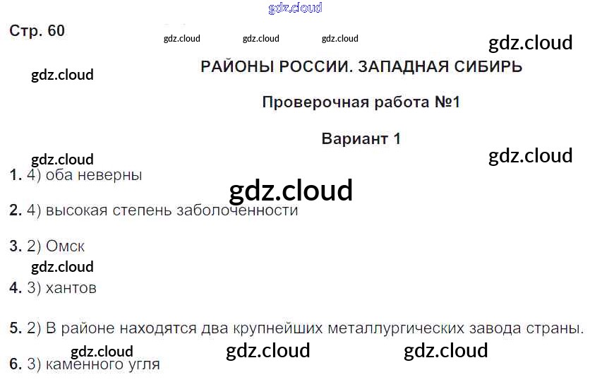 ПР-1 Ответы к теме Районы России. Западная Сибирь по Географии 9 класс Тетрадь-экзаменатор Барабанов Сферы Просвещение