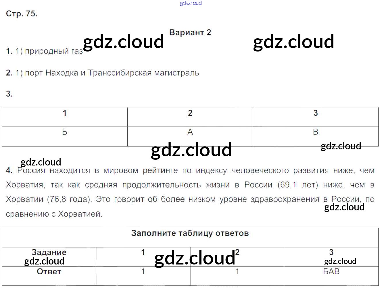 Ответ на задание вариант-2 Тетрадь-экзаменатор География за 9 (девятый) класс Барабанов Сферы 2017